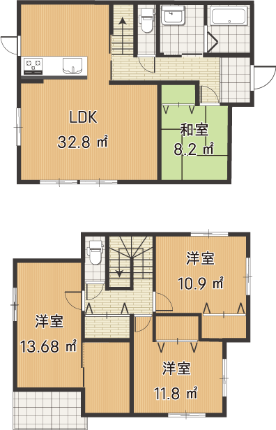 1棟4室(13.68㎡/11.8㎡/10.9㎡/8.2㎡)