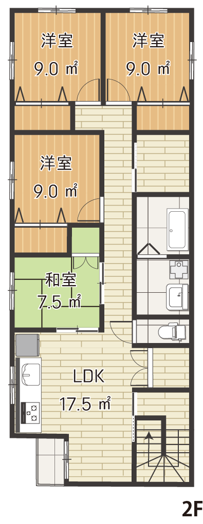 1棟4室( 9.0㎡(3室)/7.5㎡(1室) )